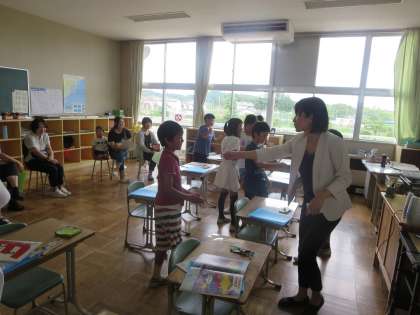 4年生は英語の授業。ペアを作って好きな曜日をたずねたり答えたりしていました。
