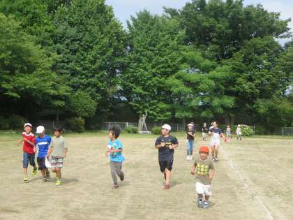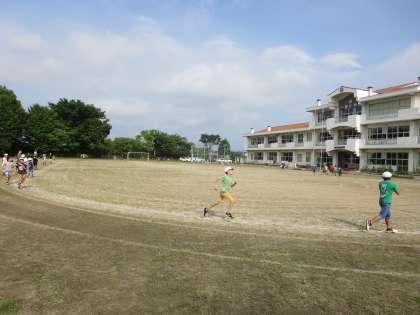 そしたら、昇降口から次々に小泉っ子が姿を現し、ほぼ全員が校庭を走りました。