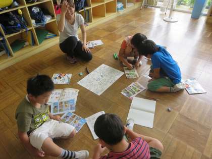 生活の授業では、虫とりに役立てようと虫図鑑づくりに取り組み、