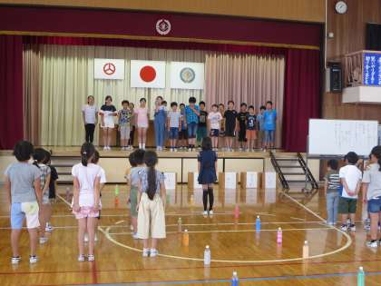 水泳交歓会に出場する高学年の選手たちの活躍を願って、壮行会を行いました。ことばや歌、姿に精一杯の思いを込めて選手の活躍を願う子どもたち。それを受け止めて、一所懸命に自分の思いを話す子どもたち。
