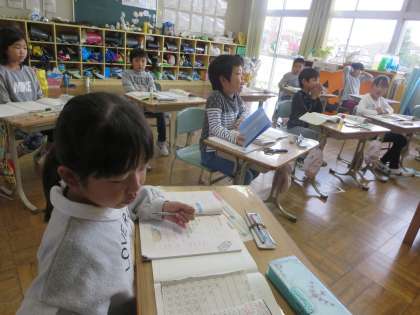 教室から元気な声が響かせていたのは2年生。九九を一所懸命に唱えていたのです。表情や目の動きから、学習に対する強い意欲が感じられました。