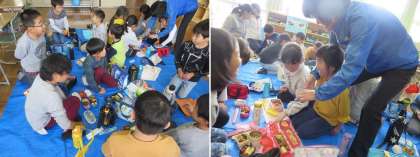 子どもたちが今朝大事に持ってきたのは、お弁当でした。ただしこのお弁当、おうちの方に全部お任せではなく、子どもたちが何らかのかかわりをしたものです。「あなたは何をしましたか?」と子どもたちにたずねたところ、