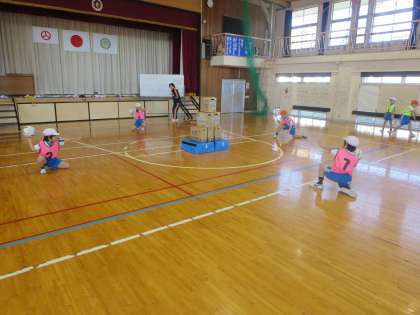 本校の課題である投げる力を向上させていくための運動に取り組んでいます。今回は的あてゲームを通して互いに高め合う学習を目指しているところです。運動したことを振り返り、改善方法を話し合い、その動きを試す。まさに頭とからだ、心をフルに使った学習ができつつあります。