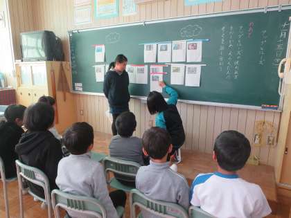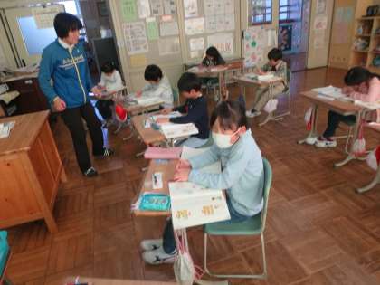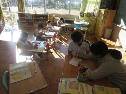 さて、1年教室では自分が読んだ本のよいところを紹介する学習が行われていました。言葉を使って自分の思いを伝える力が育ってきています。