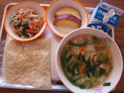 みそラーメン、牛乳、ふかし芋、ほうれん草のナムルでした。