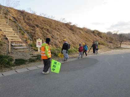 今朝は集合場所に集まってくるのが早かったのでしょうか、集団登校は7時43分に完了しました。