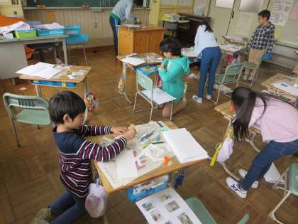 1年生も夢中になってお絵描き中。1年生になってできるようになったことを話し合っていたのが昨日。今日は、1年生で何をしてきたのかを絵に表していたのですね。できあがりが楽しみです。だって、絵にするのはある目的があるから…。