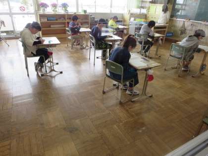 今日の午前中、4〜6年生はふくしま学力調査に取り組みました。先生の説明に耳を傾けたあと、問題用紙を開き、解答し始めました。後日送付される調査結果をもとに、一人一人の特性や伸びを確かめたり、個に応じた学習指導に生かしたりしていきます。