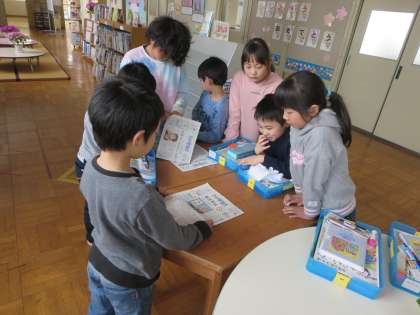 新聞の見出しや記事を目にしながら、自分の気付きや知っていることを話し合う姿がいいね!です。