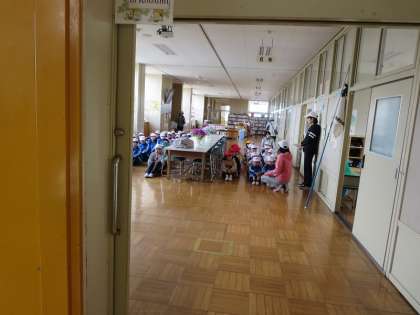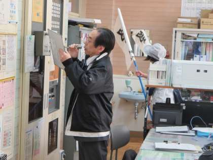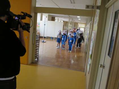 9時20分。「阿武隈川が増水し、堤防決壊の恐れがある」という設定で、避難訓練が始まりました。まずは、放送の指示にしたがって、2階ワークスペースへ1次避難を行いました。