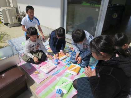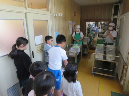 そして、班ごとに給食室でお弁当を受け取り、会食場所に移動。準備が整ったら班長さんを中心に「いただきまーす!」。