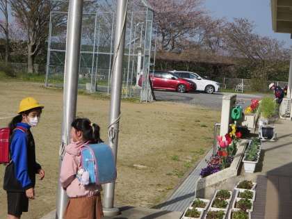 今朝の校庭。校外学習に出かける学年があるので、いつもより人数は少なめでした。でも、学年の違う子どもたちが走ったり委員会活動をしたりする姿は輝いていました。