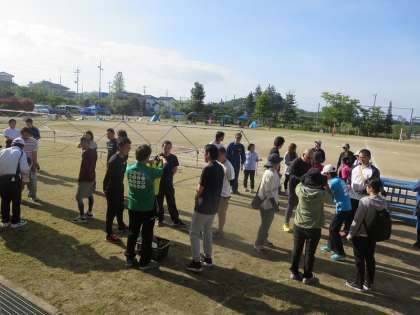 7時から役員の皆さまのご協力を得て、係打ち合わせ、そしてテントや万国旗など会場設営を行いました。皆さま方が主体的に動いてくださったので、8時前に完了することができました。