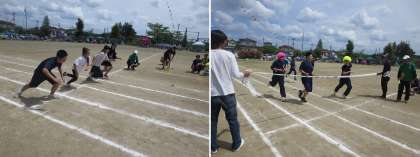 本校は、明健中学校区の一員として小中一貫教育に取り組んでいます。時間を作って本校を訪れてくれた卒業生のみなさん、ありがとう!後輩たちを励ます姿、そして競技に参加し、力強さだけでなくユーモアもたっぷりと見せてくれたことに感謝しています。