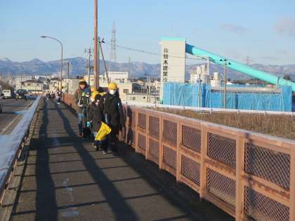 大変冷え込んだ朝となりました。風はさほど吹いていませんが、足の指先がしびれるような寒さです。でも、昨日の大変な状況の中でもしっかりと歩いてきた小泉っ子です。日差しを浴びながら元気に登校してきました。7時46分、集団登校完了。今日もいい日に!