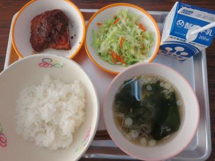 ソースカツどん、牛乳、ボイルキャベツ、わかめのみそ汁でした。