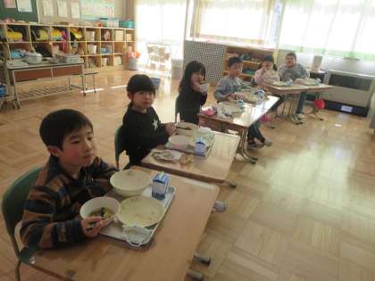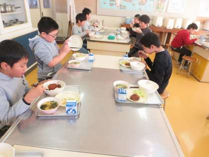 午前中からソースづくりに時間をかけていました。ソースやケチャップ、みりんに〇〇〇…。数種類の調味料をブレンドし、手間をかけてつくったものはおいしいに決まってる!どの教室でも幸せそうにほおばる小泉っ子の姿が見られました。中には「毎日出てきてもいいです…」の声も。