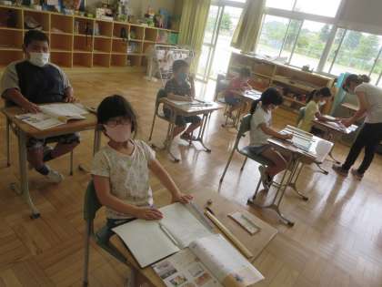 3年生は、わり算の学習中。あまりがあるときはどうすればいいのか、先生と一緒に考えていました。2年生は、長さの学習中。ものさしを使ってcmやmmを正しく測りとることができていました。