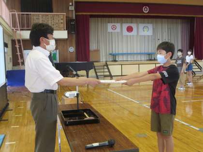 お昼に集会活動を行いましたが、その前に表彰を…。