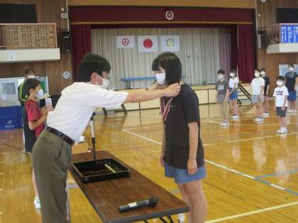 実は、年度末、年度初めの臨時休業で賞状等の伝達機会を設けることができないでいました。今回は版画の全国展で入賞した子と陸上で校内新記録を出した子のがんばりを全校でお祝いしました。遅くなってしまったけれど、よくがんばりましたね、おめでとう!