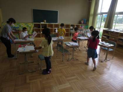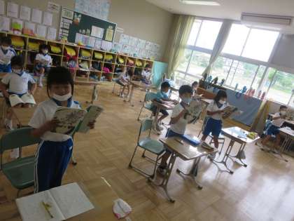1年生は物語教材の音読をしていました。読み方がだいぶなめらかになってきましたね。読んでいるときの表情の変化から、読もうとする気持ちや場面を想像している様子が感じられます。