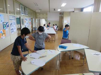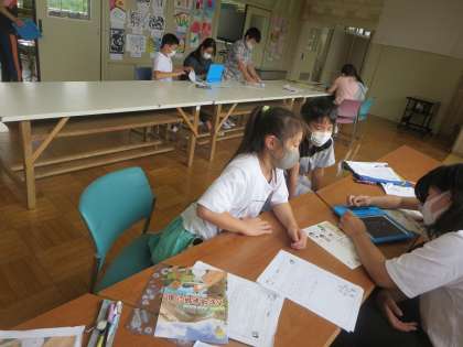 先週「歴史体験学習」に出かけた5・6年生。お弁当を食べ、冒険広場で遊ぶことが第一目的ではなく、古墳や大昔のくらしについてしっかりと見たり体験したりしてきたのです。でも、その後に何もしなければ「楽しかったなあ」「…そういえば広場で遊んだよねえ」といい思い出として終わりです。今日は、班ごとに体験を思い起こし、テーマに沿って考えをまとめていく活動を行っていました。5・6年生の学びはまだまだ続いていくのであります。