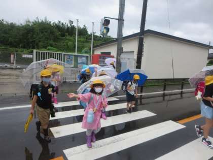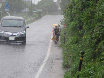 子どもたちが登校する時間帯に雨が激しくなりました。傘はもちろんのこと、カッパに長靴でも衣服が濡れてしまうほどです。そのような中でも、道路状況に気を配り、互いに助け合って登校してきた小泉っ子の姿に感動。そして、激しい雨の中を一緒に、一所懸命歩く子どもたちの姿を見て、減速したり距離をとったりして走行してくださった多くのドライバーのみなさまに感謝です。