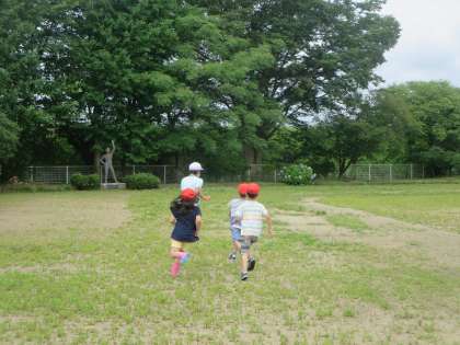 1年生がひたすらに上級生を追いかけてまわる「ハンター」の姿が見られました。とことん追いかけるパワーと情熱は変わりありません。一緒に楽しんでくれる上級生の笑顔も輝いていました。見ている大人を笑顔にさせる小泉っ子なのです。