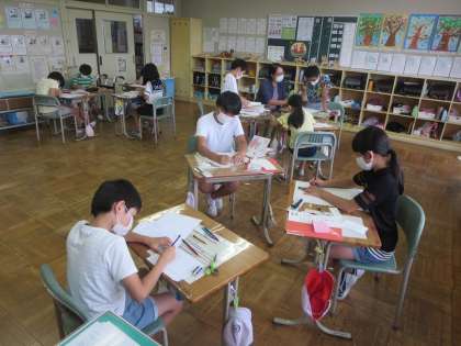 取材を終えたミニ記者たち。ついに新聞づくりが始まりました。一人一人の担当するテーマが違うようです。これからも少しずつ紹介していく予定ですが、完成するまで「ヒ・ミ・ツ」にしたい子どもたちです。あまり詳しいことを書くとこちらの取材NGとなるので…。