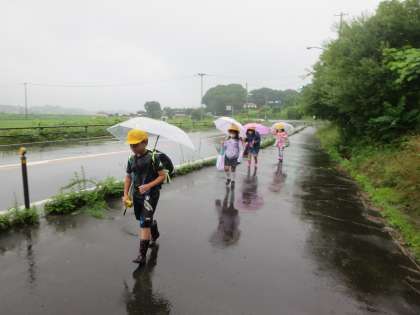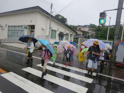 雨の朝。小泉っ子は班長さんを先頭に安全に気をつけながら登校してきました。今日はずうっと雨の予報です。感染症対策を含め、室内での過ごし方に気をつけていきます。