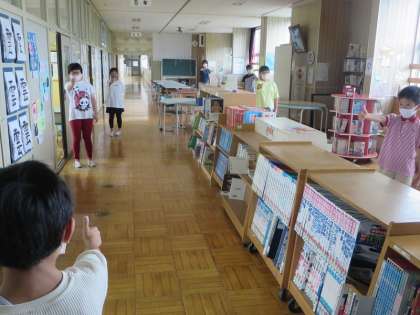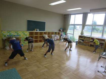 アイアイ体操。2階では目・顔の状態をじっくりと確かめている上学年の姿が見られました。