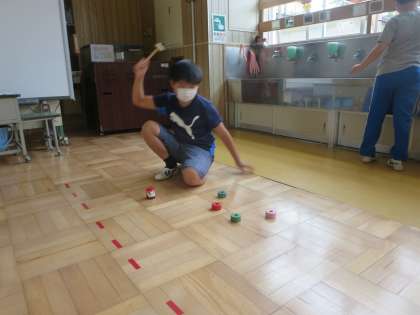 ワークスペースではだるま落としの技を磨く3年生。大声を上げたり激しく動き回ったりしなくても、楽しい時間を過ごしていたのです。