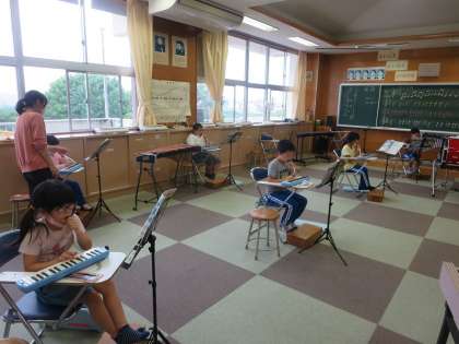 2年生は鍵盤ハーモニカで2小節の旋律づくり。教科書の曲に合わせてうれしそうに演奏していました。