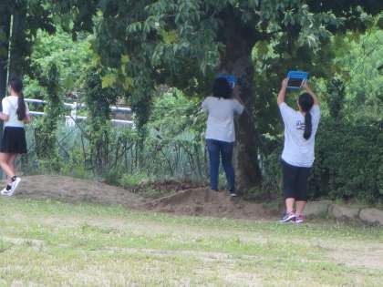 校庭や校舎の中でiPadを片手に歩き回る5・6年生の姿を発見。そして子どもたちは写真をパチリ、パチリと撮っているのです。何をしているのでしょう?(つづく)