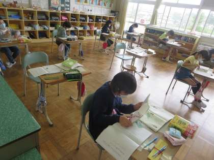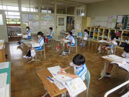 国語の授業。漢字の学習に取り組んでいました。正しく書く(読む)ことに加え、辞書を使って意味もとらえていくのは、頭の中にことばを貯金するうえで大切なことですね。