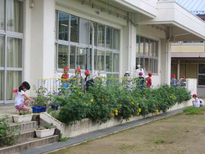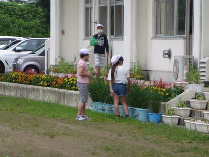 長い梅雨が続いています。それでも花や野菜など、植物はたくましく育ってきています。お世話する小泉っ子はうれしそうに見つめているのでした。