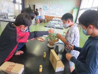 植物の成長やからだの働きを学習中です。6年生は光合成に関して、5年生は花粉に関してそれぞれ実験や観察を行っていました。ふだんは直接見えないことを目に見えるようにすることで不思議さを実感しています。