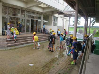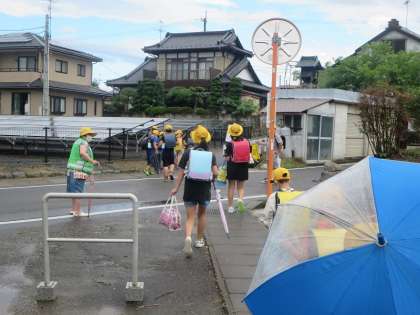 朝7時前後に降り出した雨、登校時間帯は降ったりやんだりという感じでした。