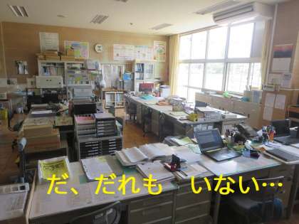 12時近くの職員室をのぞいたら…誰もいません。…消えてしまいました…ではなく、それぞれお昼ご飯の準備等で席を外していたのです。