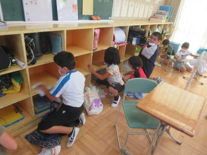 2・3年生は、2学期の始まりに当たって、教室や学習室の掃除をしました。机やロッカーなど自分が使うところをていねいに拭く姿、とても立派ですね。