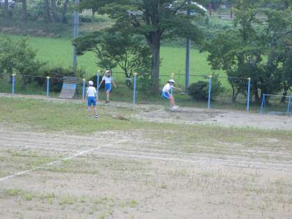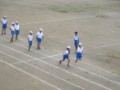 いよいよ陸上運動が始まりました。気温・暑さ指数ともに約27度。水分補給の休憩を取り入れながら、短距離走や走り幅跳びに熱心に取り組んでいました。