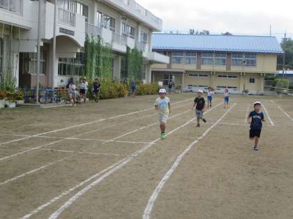 朝の校庭。ちょっと、いつもと違うような気がしました。よく見てみると…。高学年の子どもたちがいつもより早く出てきていますね。そしていつもより気持ちの入った走り方をしています。終わった後には、先生と一緒にさっと草取りを。今朝の姿、ちょっといい感じです。