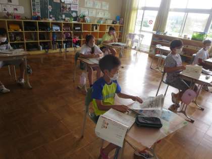 5年生の手元には、小学生新聞。紙面の作り方や記事の書き方について、教科書を用いながら確かめていく学習が始まりました。この学習を続けていくことで、新聞の読み方を身に付けていってくれますように…。