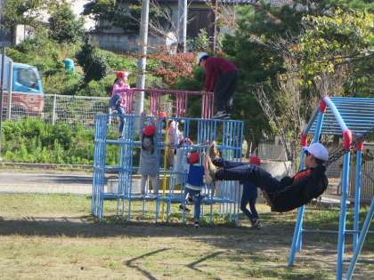 遊具や鬼ごっこなど、秋空の下、気持ちのよい汗を流していた小泉っ子でした。中でも鉄棒をがんばる4年生の姿を「すごい」と見入っていた6年生の姿がすてきでした。