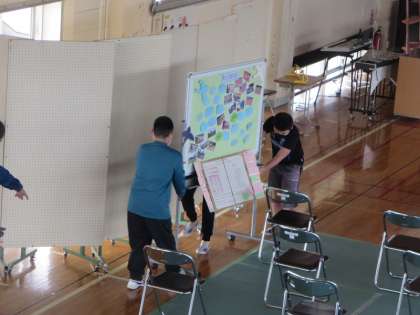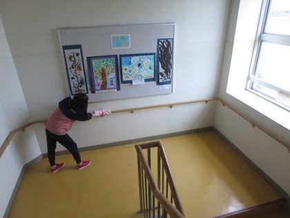 今日も高学年の子どもたちや先生たちが時間を見つけて小泉フェスタの準備に取り組みました。会場の方々にはっきり伝えることができるようにと、60m近い廊下を使って発声・発表の練習をした4年生の姿もありました。児童下校後の消毒作業も行いました。