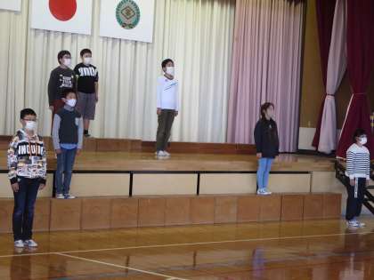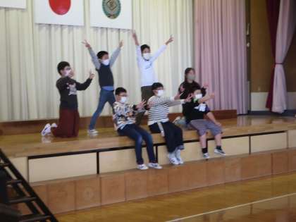 いつも活発に動き回る「動」の5年生が「静」の姿で国語の暗唱にチャレンジしました。これは大冒険かも…という予想は大外れ、国語で学習した「枕草子」の合間に自作の俳句をはさんだ構成は感動的でありました。また、自作の詩「考えるのっておもしろい」では、身体表現を加えて堂々と朗読し、大きな拍手をいただくことができましたね。いつも言っている「やればできる!」を見事に証明してくれた5年生でありました。