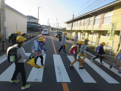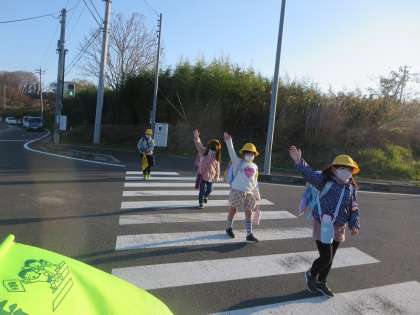 素晴らしく晴れました。風もおだやかで、気分よく歩くことができる朝でした。ですから小泉っ子の歩きも快調で、7時41分には集団登校完了しました。