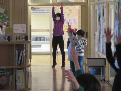 さわやかタイム。ここでも動きが軽快な小泉っ子の姿が見られました。からだと心の調子がいい感じになっているのかもしれません。学習や生活でも、自分のやるべきこと・やりたいことに夢中になってくれるといいな、そう願った朝でした。