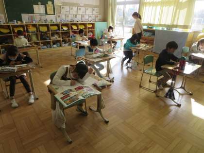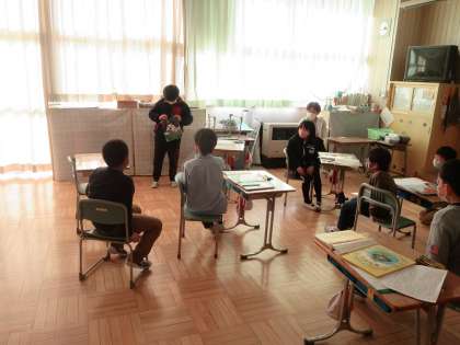 3年生は、物語の学習のまとめとして、自分の選んだ本を紹介していました。民話や昔話について自分がよいと思ったことを一所懸命に伝えようとしていました。聴き手の子どもたちも自分の意見をはっきり話していましたね。