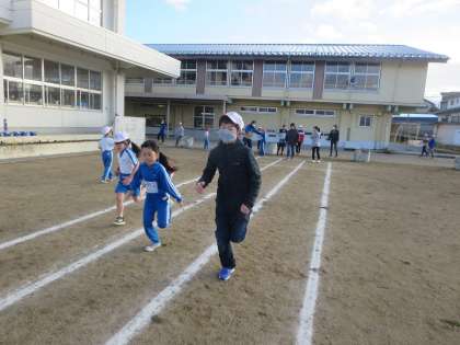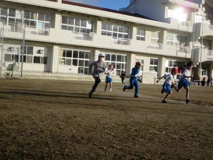強烈な日差しは、窓ガラスで反射され校庭にいっぱい降りそそいでいました。その中を走る子どもたちの姿は当然まぶしく見えます。